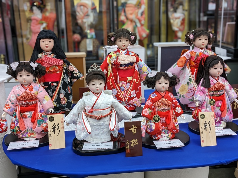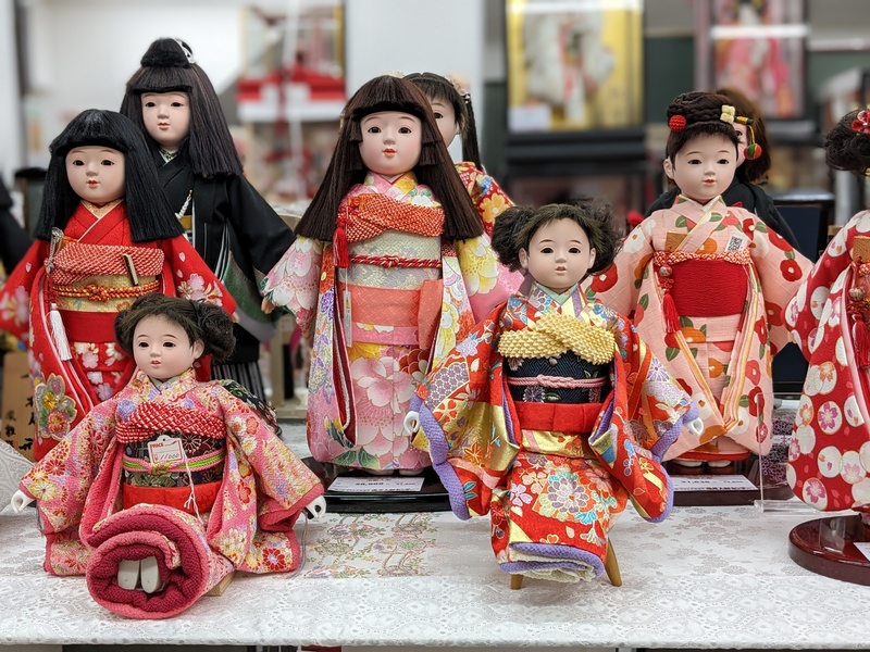 お出迎え人形、市松人形多数展示中
